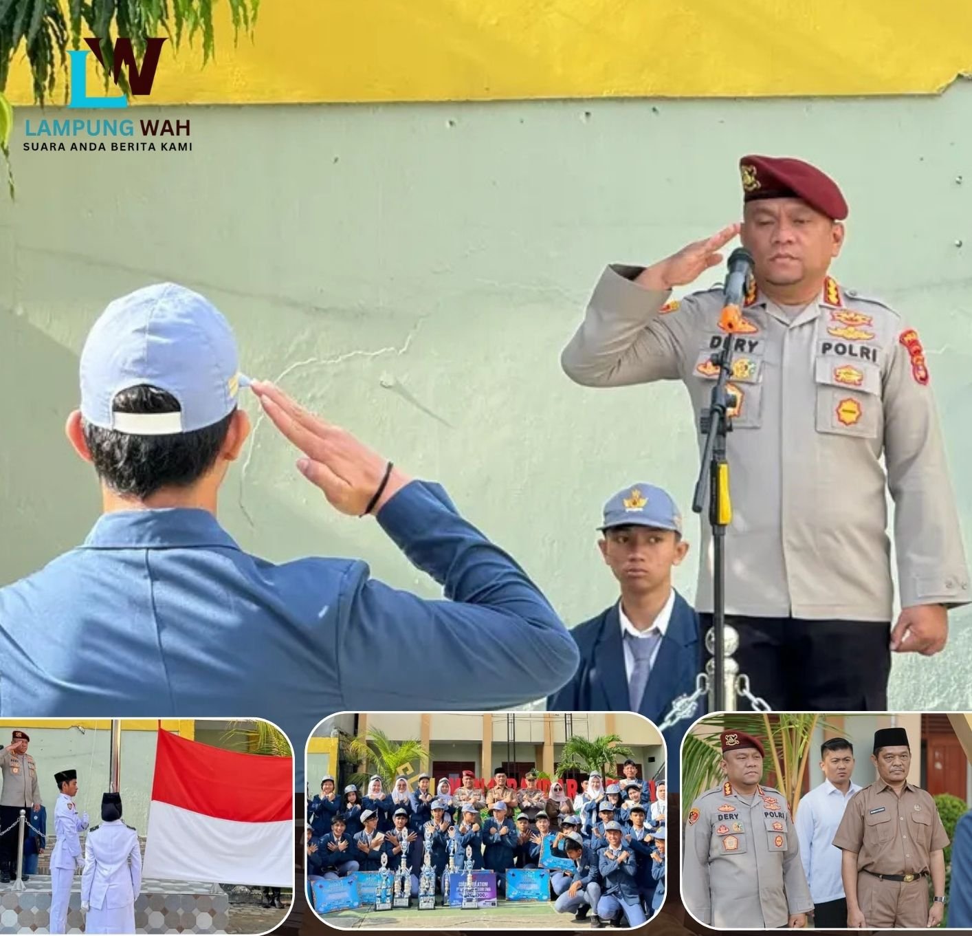 Bandar Lampung, lampungwah.info — Dalam rangka pembinaan pelajar dan tindak lanjut dari surat telegram Kapolri yang menugaskan pejabat utama Polda Lampung untuk menjadi inspektur upacara di SMA/SMK wilayah Bandar Lampung, Dirreskrimsus Polda Lampung, Kombes Pol Dery Agung Wijaya, S.I.K., S.H., M.H., bertindak sebagai inspektur upacara pada kegiatan upacara bendera di SMA Negeri 10 Bandar Lampung. Kegiatan upacara berlangsung khidmat dan diikuti oleh seluruh siswa, guru, serta staf SMA Negeri 10 Bandar Lampung. Senin (29/9/2025).