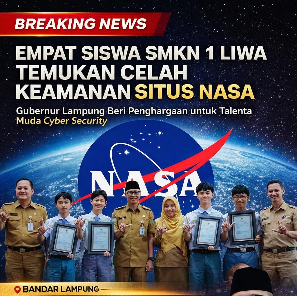 Bandar Lampung, Lampungwah.info – Gubernur Lampung, Rahmat Mirzani Djausal, memberikan penghargaan kepada empat siswa dari SMKN 1 Liwa yang berhasil menorehkan prestasi internasional dengan menemukan celah keamanan pada situs milik NASA melalui program bug bounty.