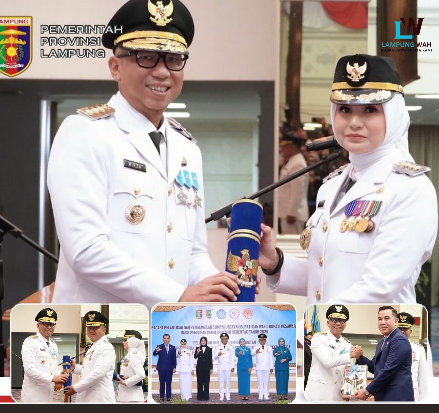 Gubernur Lampung Rahmat Mirzani Djausal melantik Nanda Indira dan Antonius Muhammad Ali Sebagai Bupati dan Wakil Bupati Pesawaran Periode 2025–2030