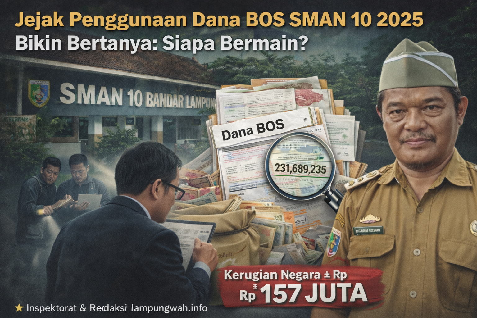 Bandar Lampung, lampungwah.info — Dugaan penyimpangan dalam pengelolaan Dana Bantuan Operasional Sekolah (BOS) kembali mencuat. Kali ini, sorotan publik tertuju pada SMAN 10 Bandar Lampung, setelah sejumlah data anggaran tahun 2025 pada pos Administrasi Kegiatan Sekolah dinilai tidak wajar dan berpotensi merugikan keuangan negara.