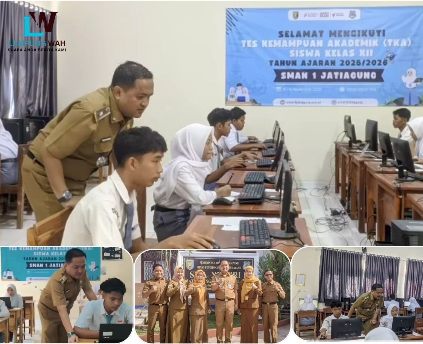 Lampung Selatan, lampungwah.info – Kepala Dinas Pendidikan dan Kebudayaan (Disdikbud) Provinsi Lampung, Thomas Amirico, S.STP, M.H., meninjau langsung pelaksanaan Tes Kemampuan Akademik (TKA) berbasis komputer bagi siswa kelas XII di SMAN 1 Jatiagung, Senin (03/11/2025).