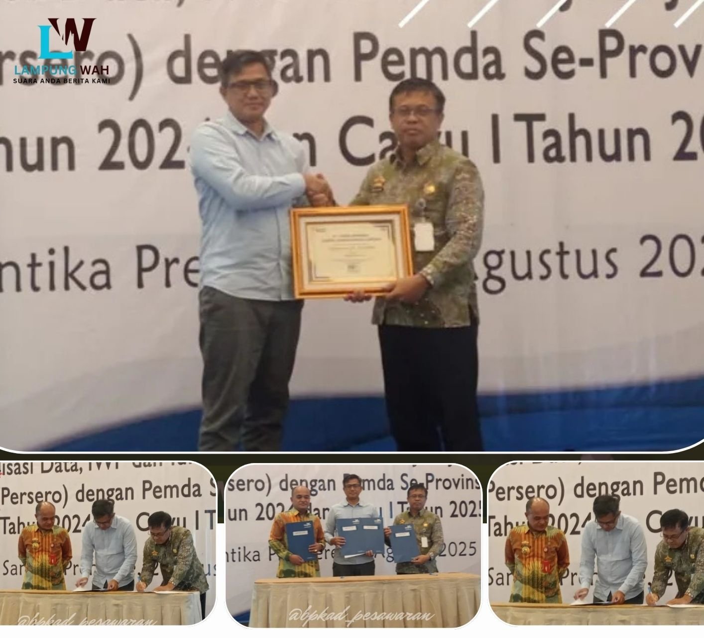 Bandar Lampung, lampungwha.info — Pemerintah Kabupaten (Pemkab) Pesawaran berhasil terima penghargaan peringkat III atas kinerja dalam ketepatan penyetoran Iuran Wajib Pegawai (IWP) serta pembayaran Jaminan Kecelakaan Kerja (JKK) dan Jaminan Kematian (JKM) se-Provinsi Lampung. Dan dihadiri langsung oleh Plt. Kepala Badan Keuangan dan Aset Daerah (BPKAD) Kabupaten Pesawaran, Iswanto, S.E., M.S.Ak.