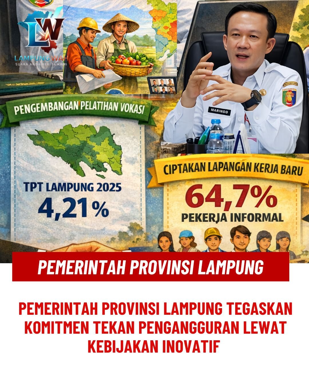 Bandar Lampung, Lampung Wah — Pemerintah Provinsi Lampung terus menunjukkan komitmennya dalam menekan angka pengangguran melalui berbagai kebijakan strategis dan inovatif. Langkah ini menjadi bagian dari upaya meningkatkan kualitas sumber daya manusia (SDM) serta memperkuat daya saing daerah.