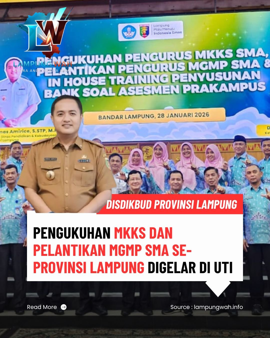 Acara tersebut dihadiri Kepala Dinas Pendidikan dan Kebudayaan Provinsi Lampung, Thomas Amirico, S.S.T.P., M.H., jajaran kepala sekolah SMA, pengurus MKKS, pengurus MGMP, serta para guru dari berbagai kabupaten dan kota di Provinsi Lampung.