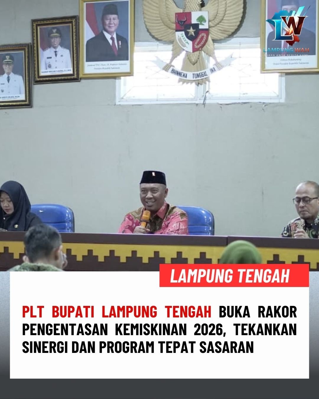 Lampung Tengah, lampungwah.info – Pelaksana Tugas (Plt) Bupati Lampung Tengah, I Komang Koheri, S.E., M.Sos., secara resmi membuka Rapat Koordinasi (Rakor) Pengentasan Kemiskinan Kabupaten Lampung Tengah Tahun 2026 yang digelar di Aula Badan Perencanaan Pembangunan Daerah (Bappeda) Lampung Tengah, Kamis (26/2/2026).