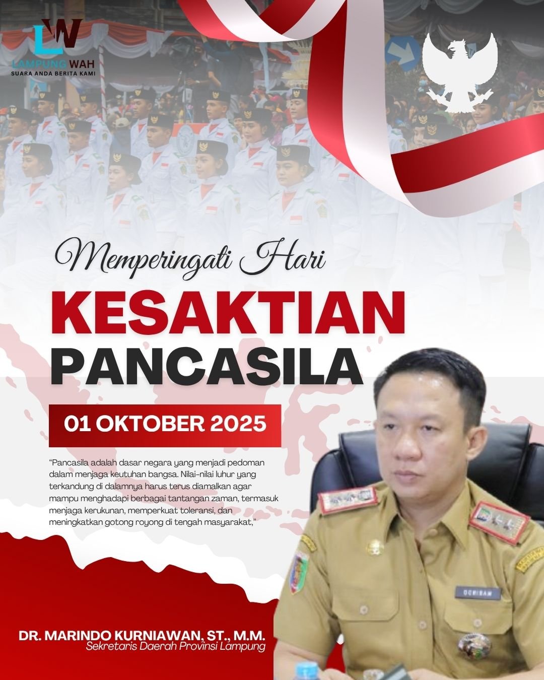 Sekretaris Daerah Provinsi Lampung, Dr. MARINDO KURNIAWAN, S.T., M.M., mengucapkan selamat memperingati Hari Kesaktian Pancasila, 1 Oktober 2025