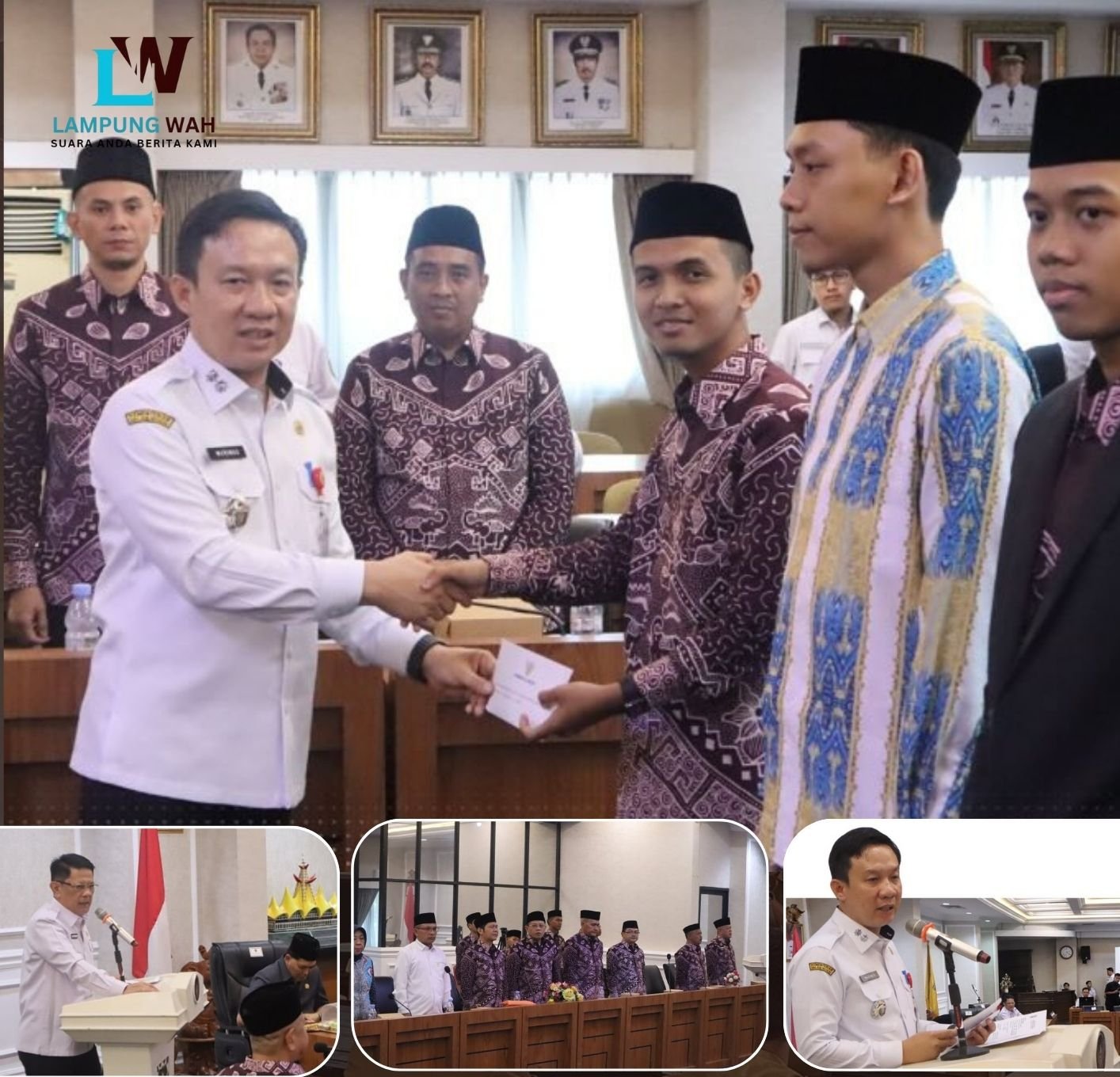 Bandar Lampung, lampungwah.info —- Gubernur Lampung yang diwakili oleh Sekretaris Daerah Provinsi Lampung, Marindo Kurniawan melepas Kafilah Provinsi Lampung sebanyak 36 orang yang terdiri dari peserta, pelatih, dan official. Yang akan berlaga pada Seleksi Tilawatil Qur’an dan Hadist (STQH) Tingkat Nasional ke-XXVIII Tahun 2025 di Kota Kendari, Sulawesi Tenggara bertempat di Ruang Rapat Utama Kantor Gubernur, Rabu (08/10/2025).