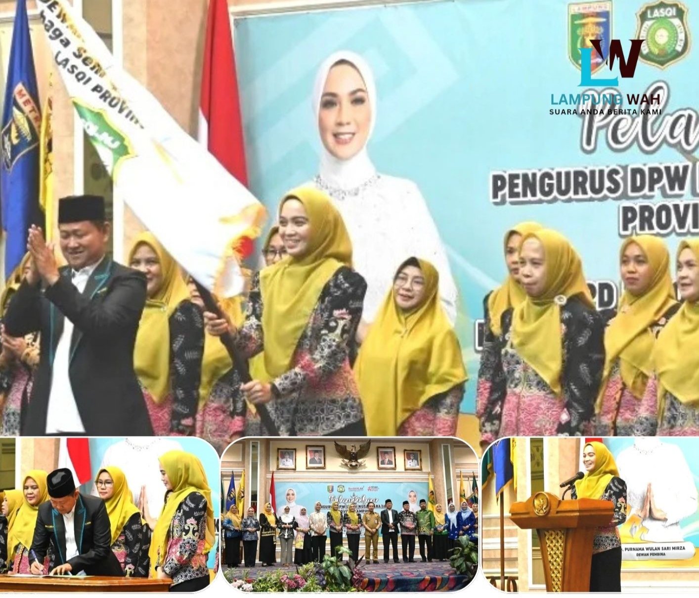 BANDARLAMPUNG — Sekretaris Jenderal DPP Lasqi Nusantara Jaya, Aminundin, melantik Agnesia Wulan Marindo sebagai Ketua DPW Lasqi Nusantara Jaya Provinsi Lampung masa bakti 2025-2030. Pelantikan berlangsung di Balai Keratun, Komplek Dinas Kantor Gubernur, Bandarlampung, Selasa (21/10/2025), disaksikan Dewan Pembina Ibu Purnama Wulan Sari Mirza.