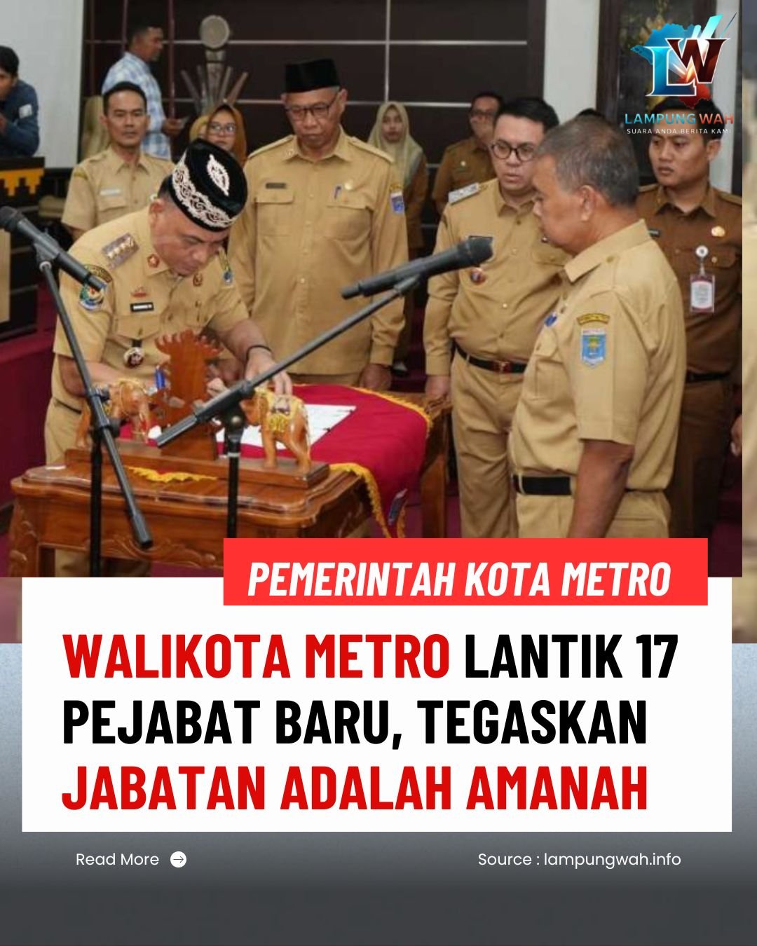 Dengan komposisi pejabat baru ini, Wali Kota berharap kinerja pemerintahan Kota Metro semakin solid, adaptif terhadap perubahan, dan mampu menjawab tantangan zaman.