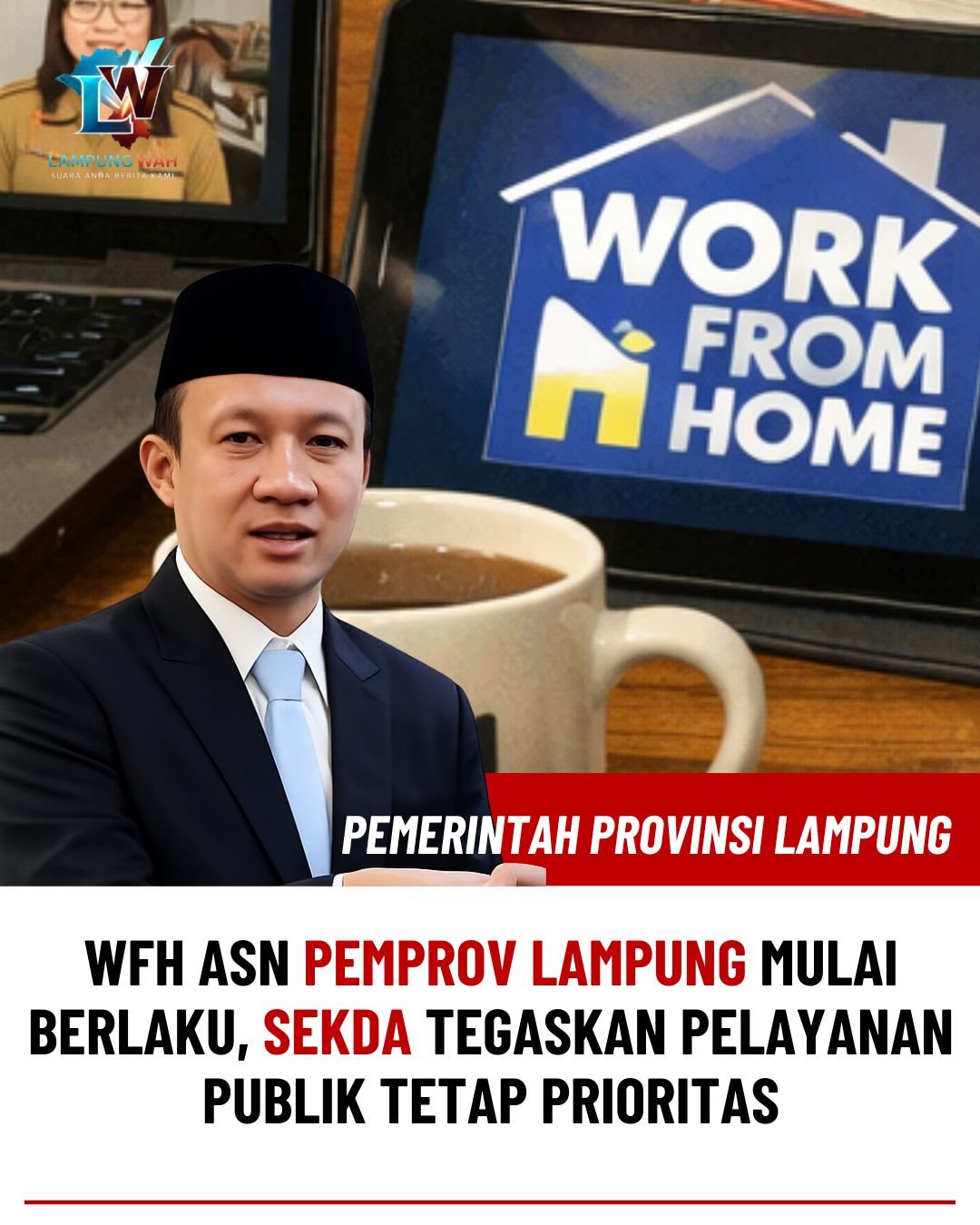 Bandar Lampung, Lampung Wah — Pemerintah Provinsi Lampung resmi menerapkan kebijakan work from home (WFH) bagi aparatur sipil negara (ASN) mulai Jumat (10/4/2026). Kebijakan ini disampaikan langsung oleh Sekretaris Daerah Provinsi Lampung, Marindo Kurniawan, pada Kamis (9/4/2026).